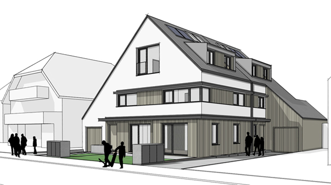 AV15 - HAUS VERA Doppelhaus | LPH 1-4 2022 - Neubau eines Doppelhauses, zweier Einzelgaragen sowie Abbruch des Bestandes. Entwurf und Baugenehmigungsplanung im Rahmen der Leistungsphasen 1-4. Holz-Massivbaukonstruktion. Baugenehmigung: 2022 Baukosten: ca. 1.300.000,- München | Großhadern |