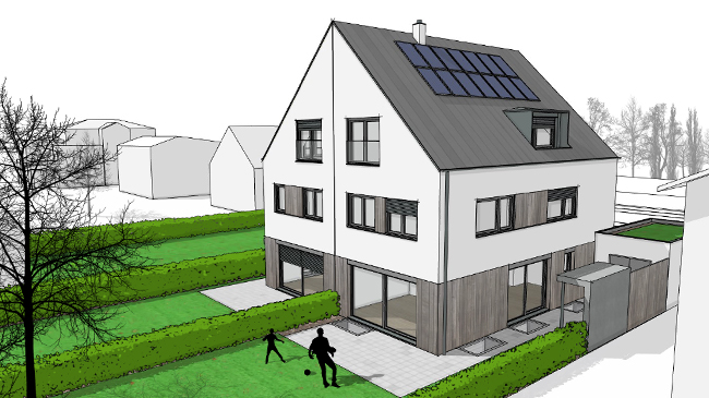 BS47 Doppelhaus mit Wintergarten | LPH 1-4 2023 - Neubau eines Doppelhauses mit Wintergarten und Garage als Anbau an den Bestand. Entwurf und Baugenehmigungsplanung im Rahmen der Leistungsphasen 1-4. Baugenehmigung: 2023 Baukosten: ca. 1.200.000,- München | Obermenzing |