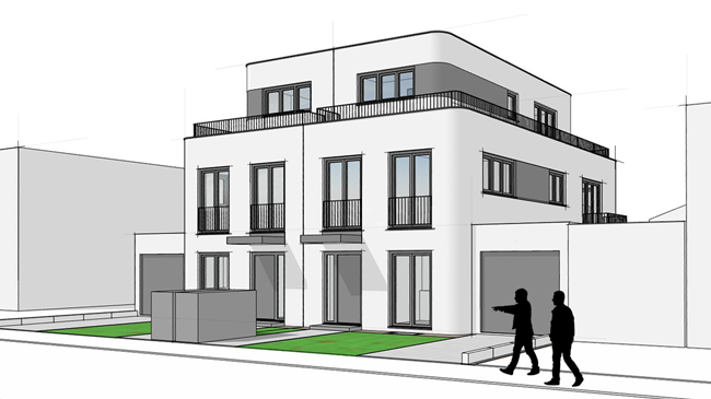 LS84 Doppelhaus | LPH 1-4 2021 - Neubau eines Doppelhauses mit jeweils einer Einzelgarage sowie Abbruch des Bestandes. Entwurf und Baugenehmigungsplanung im Rahmen der Leistungsphasen 1-4. Baugenehmigung: 2021 Baukosten: ca. 1.320.000,- München | Forstenried |