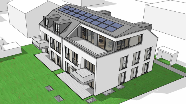 W 1 MFH | VORBESCHEID 2023 - Neubau eines Mehrfamilienhauses mit Tiefgarage sowie Rückbau des Bestandes. Antrag auf Vorbescheid, der auf Bauherrnwunsch die Rahmenbedingungen des geltenden Bebauungsplans überschreitet. Baugenehmigung: 2023 Baukosten: ca. 1.600.000,- München | Neuried |